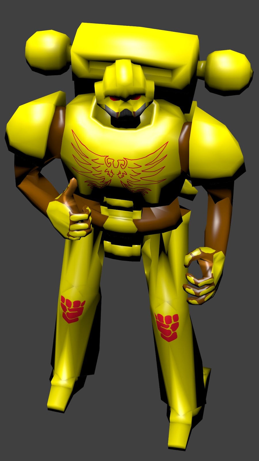 My blender Space Marineversion 0.1 is now complete. Here is a full render picture after making him pose (Left).